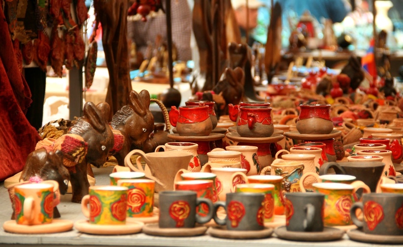 Для этого мы посетим арт-рынок Вернисаж и ГУМ. Вернисаж находится в центре Еревана, недалеко от площади Республики между улицами Арама и Бузанда. Занимает целый квартал. Работает ежедневно.